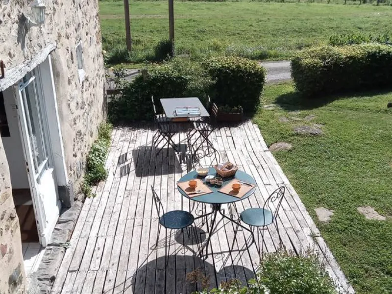 Petits déjeuners servis sur la table commune ou en terrasse.