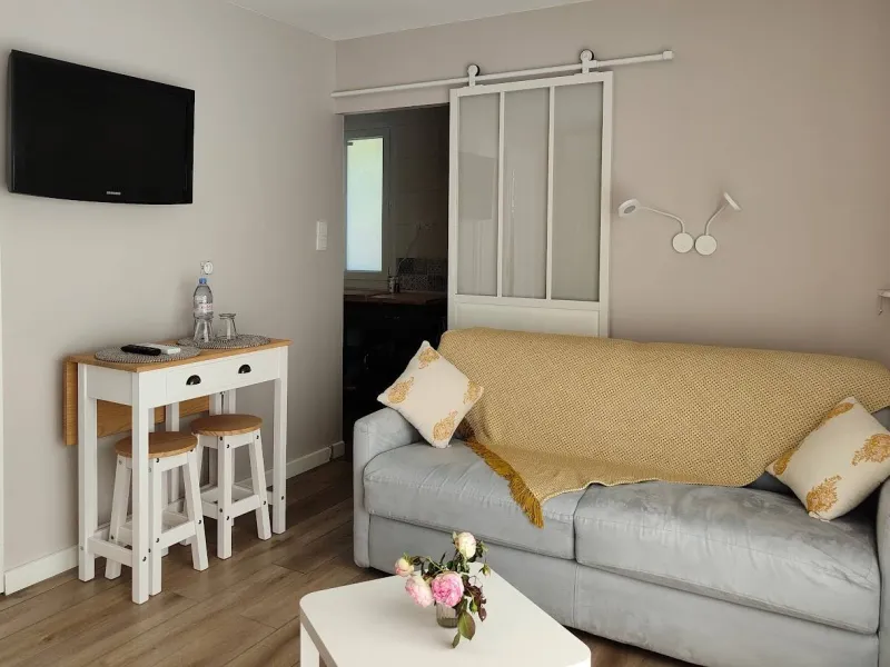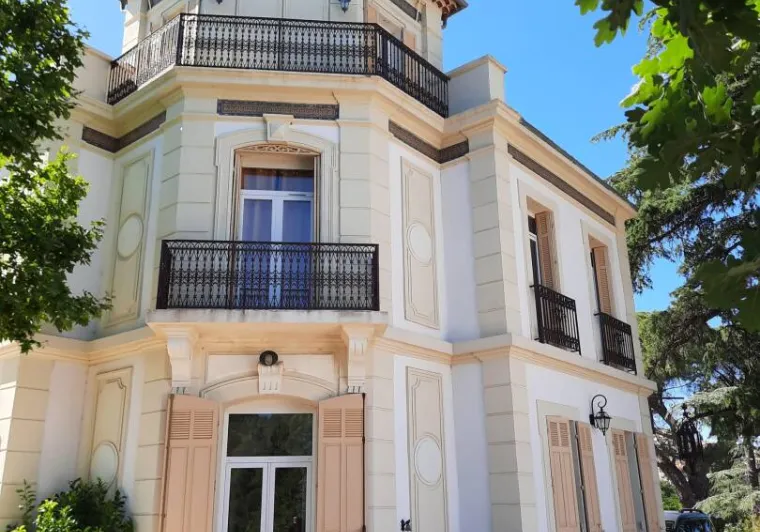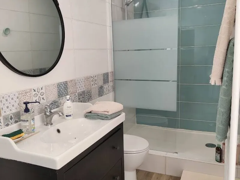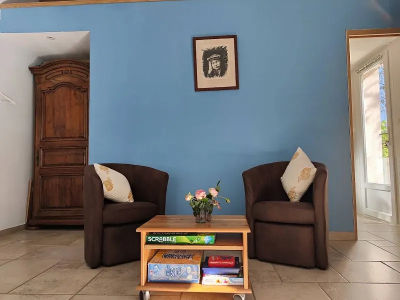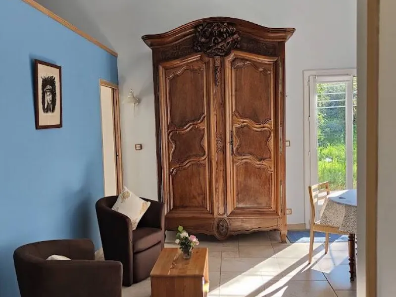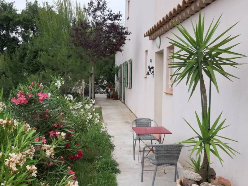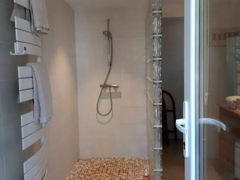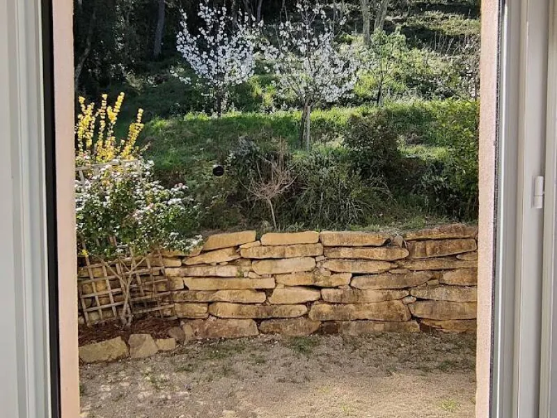 Two bedrooms with separate entrances and on-site parking:- a large, bright bedroom with cathedral ceilings, featuring a terrace with pergola and garden furniture, in a peaceful setting with panoramic views of the Maures massif. It has a shower room with walk-in shower and two washbasins.