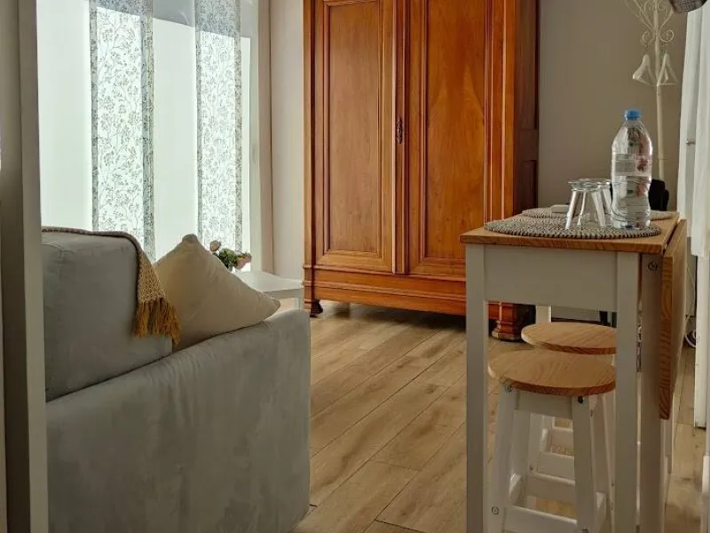 - a small, functional bedroom in a quiet location, with a shower room with walk-in shower and a view over the plain from the bay window. The bedroom also has an outdoor area that can be used in summer.