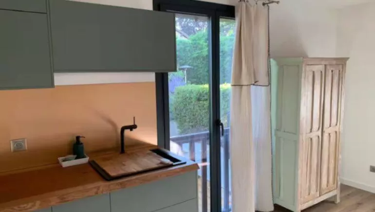 Le studio de 18 m² dispose d’une entrée privative et d’une kitchenette équipée pour vos repas simples. L’espace est bien isolé, garantissant votre tranquillité et la nôtre — vous pourrez profiter du lieu en toute intimité.