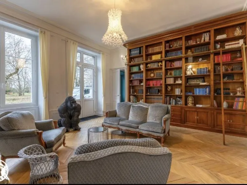 -Un salon de rencontres et d'échanges avec une grande bibliothèque ancienne.