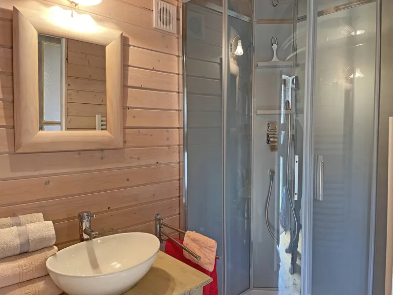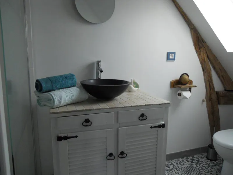 In a small building facing our dwelling house, we offer a family suite located on the ground floor elevated for up to 3 people (2 beds of 140) decoration style chalet and furnished by reviving the old materials (door, vanity unit of the bathroom).