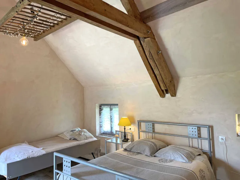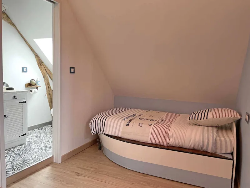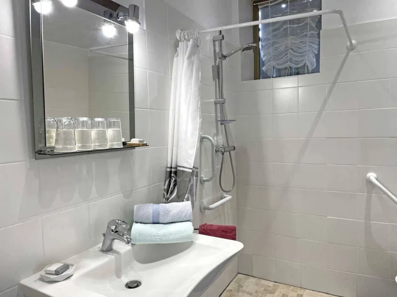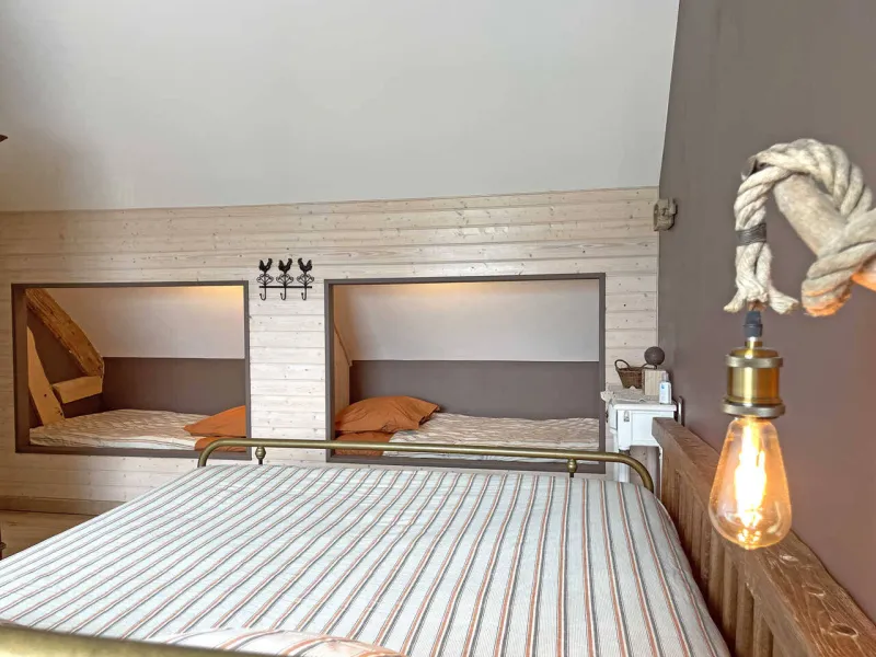 In its continuity, the room of the accessible Bergerie (PMR) has been arranged with a bed in 140 and 2 beds 90 gigognes (walk-in shower and toilet) for up to 4 people.