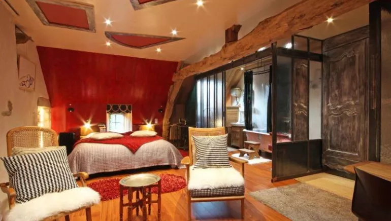 UNUSUAL NIGHT : living room (fireplace, wellness area: 38°C outdoor spa, infrared sauna, 2 massage chairs), kitchenette (microwave), upstairs bedroom (180 cm double bed, TV), bathroom/toilet (retro bathtub converted into a shower). NORDIC SUITE : wellness area: private Norwegian hot tub, massage chairs. On the 1st floor: living area, lounge area with kitchenette. On the 2nd floor: bedroom (160 cm double bed, single bed), shower room/toilet. PINK AND GOLD: exterior staircase, living room with stove, 160 cm bed, kitchen, shower room, toilet. CAST OFF : living room with coffee corner, shower room, separate toilet, and upstairs bedroom with 3 sleeping areas (160cm double bed, 140cm double bed, 1 90cm bed on the mezzanine, TV) and double sink bathroom, separate toilet. Breakfast and packed lunch delivery (homemade and organic) in a small living room. Unusual CABANE DE LÉO: living room, double bed on the mezzanine, shower room/toilet with outdoor access, private Norwegian bath.