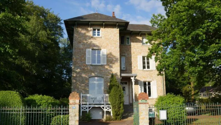 Ground floor with a few steps: entrance and living rooms. Organic and local breakfasts served in the living room (open fireplace and TV) or on the adjoining south-facing terrace. 1st floor : GUSTAV KLIMT bedroom: double bed 160 cm, adjoining shower room with wc. TOULOUSE LAUTREC bedroom: double bed 160 cm, TV, adjoining shower room and separate wc. Shared herbal tea room with fridge. Library. 2nd Floor : MUCHA Suite: bedroom with separable 160 cm double bed and TV, adjoining shower room with wc, bedroom with 2 single beds. 2,700 m² enclosed wooded park with isolated benches under the trees and garden furniture. Bike shelter. Socket for charging electric vehicles (with supplement). Credit cards accepted on site.