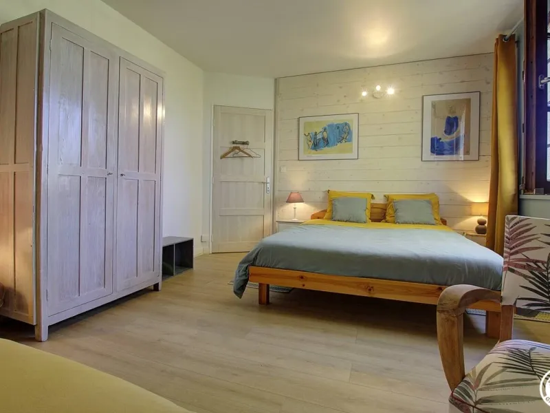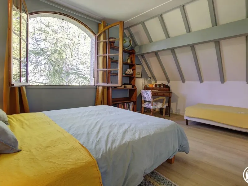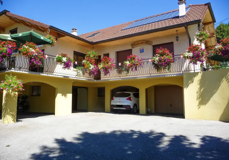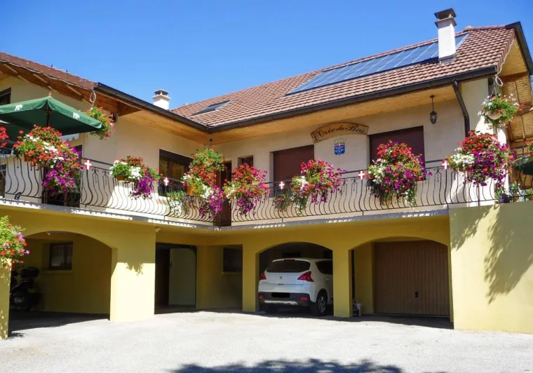 4 km from the center of Belley, Pascal and Brigitte, open the doors of their Bugiste house and offer you two bedrooms located upstairs. From the hall, you access the bedrooms by a wooden staircase, which leads to a first bedroom for 3 people with a 160*200 bed and a 90*190 bed. The second bedroom, adjoining the first, has a 160*200 double bed. The two bedrooms are each equipped with a bathroom (with WC), private to the bedroom but not adjoining (toilets in the hallway). Bathrobes are available for added comfort. This floor includes the two guest bedrooms, as well as a private space for the owners (office and a bedroom reserved for the family).At the same level, a relaxation area with television and courtesy tray, intended for guests. Breakfasts and table d'hôtes or packed lunches (upon reservation) are taken on one of the three terraces on sunny days or in the dining area. for a stopover or an extended stay, you can recharge your batteries in the large park to take advantage of the calm of the place. Parking for two cars (unsecured) located in the courtyard. For lovers of two wheels, a closed room for the safety of bicycles and/or motorcycles. 500 meters away, the Rothone forest offers beautiful walks for young and old. You can also discover Belley, a local region with its chapels, washhouses, bread ovens and wine estates. This former capital of Bugey is ideally surrounded by lakes, rivers, mountains, which will delight nature lovers. Let yourself be transported to the Grand Colombier massif and the Via Rhôna for beautiful hikes, fishing, and discovering local products.