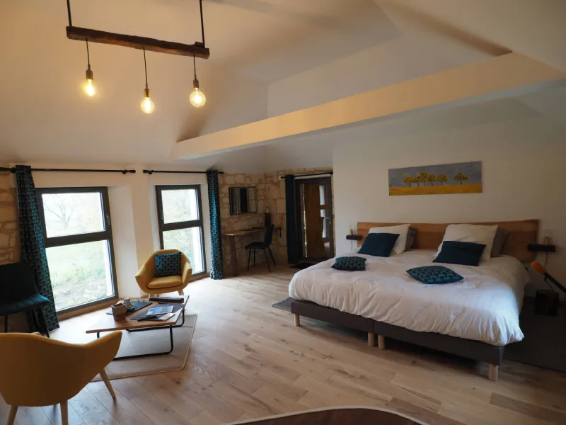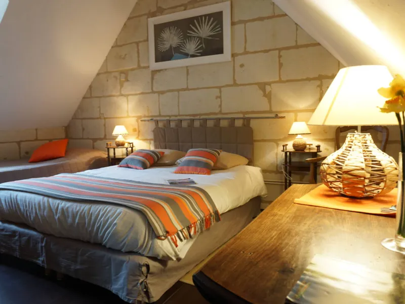 The very latest room, "Boisé-Blanc", has just opened: 35 m², very natural, very comfortable and very charming. You'll have a magnificent view of the vineyards, troglodyte cave and garden.