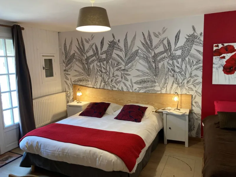 On the ground floor, red and bright, this is the "Coquelicot" room for 1 to 3 people.