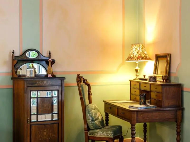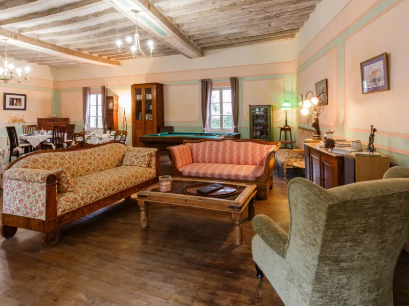 From here, you can access the various bedrooms, each with a refined interior design that enhances the authenticity of this old building. In a surprisingly bright room, an attraction in itself, you can enjoy a hearty breakfast in the ballroom in the morning.