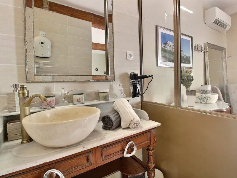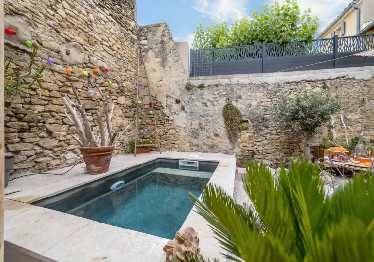 Right in the heart of the Côtes du Rhône vineyards, from which it originated, Roquemaure is located on the banks of the river, offering quick access to numerous hiking trails, with Mont Ventoux in the background.Our house is a former 18th-century farmhouse, separated into two separate dwellings. A private part, previously restored, and a part dedicated to guests, which my wife and I have renovated and decorated.
