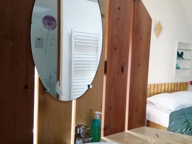 The Oasis room sleeps 2, with a double bed (160cm) and the option of adding a cot.