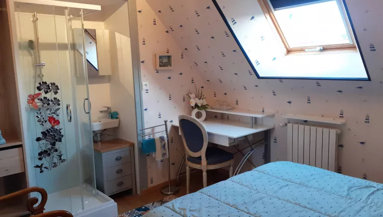 - Bedroom 5: 1 double bed 180 (90 €) separable into 2 single beds 90 (100 €) with private shower, washbasin, wc in the bedroom.