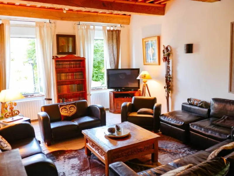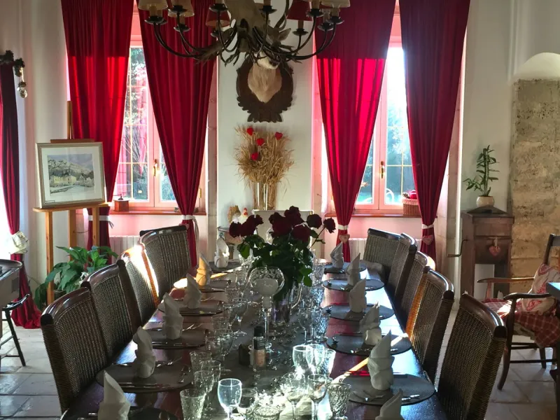 The setting, with its breathtaking views of the Bugey and Chartreuse mountains, is idyllic for a cocooning break or a few days' rest. The wooded grounds include a swimming pool, tennis court and bowling green.This magnificent, timeless residence has been restored in keeping with the authenticity of the Alps, retaining the soul of its history. Family heirlooms and antique furniture, and fabrics in warm tones are sheltered under the thick wooden roof. A mountain atmosphere that sets the warm tone for the Domaine du Manoir.