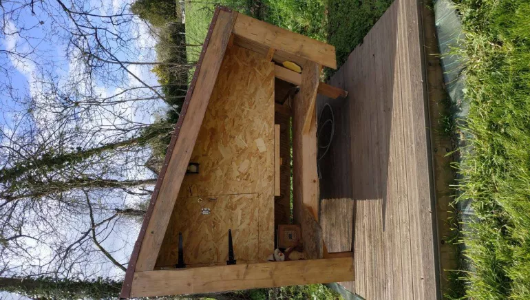The abri'cyclette is a hut for 2 persons to sleep well in the shelter, to eat comfortably seated at a sheltered table. The hut is connected to the electricity network.