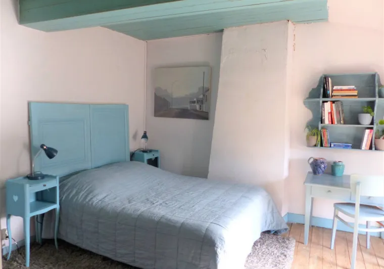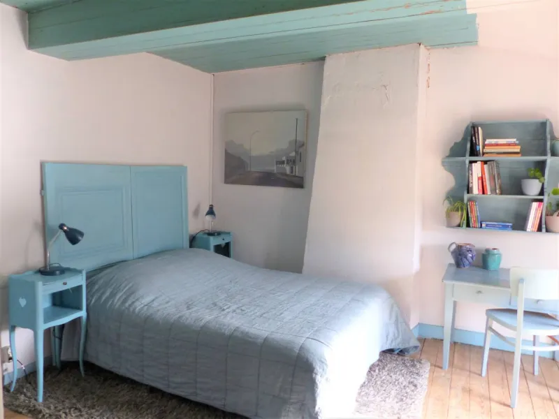 - La chambre bleue et le salon bibliothèque comprenant un lit 140 cm et une salle d'eau + dans le salon bibliothèque un canapé lit 160 cm.