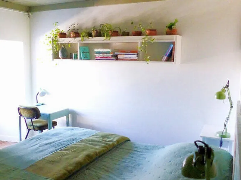 - La chambre verte comprenant 1 lit 160 cm (ou 2 lits de 80) et une salle d'eau