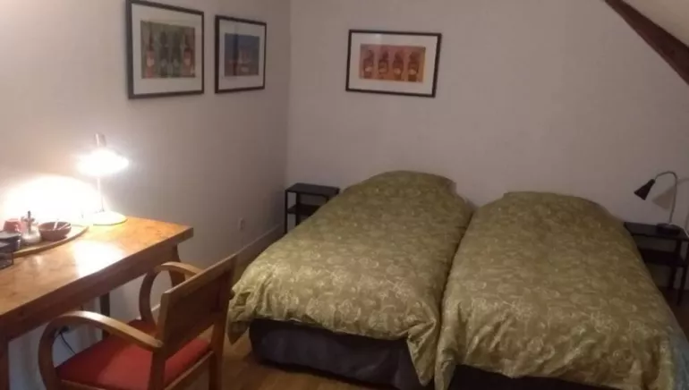 "L'Ermite" is situated in a small, quiet village in the heart of the Oise valley in Thiérache. You stay in an old farmhouse, under the sloping roof, on the smooth floorboards. Sleep in a good bed in a sober, clean and unique room during perfectly quiet nights. The days start with a good shower in your bathroom and a tasty breakfast. And when you have a day of leisure, your hosts cook a good dinner. There is a garden with four terraces and a common room with a fridge and a lot of tourist information, where you can enjoy a coffee, tea or other drink. There is also a restaurant during school vacations (closed on Tuesday, Wednesday and Thursday).