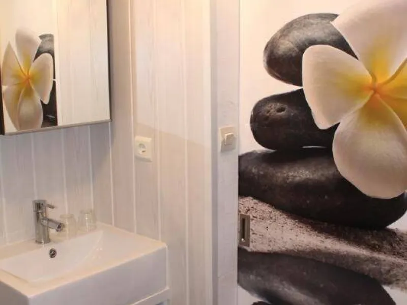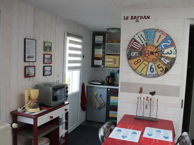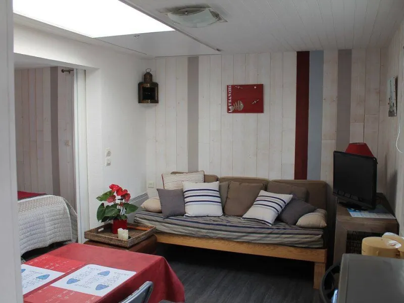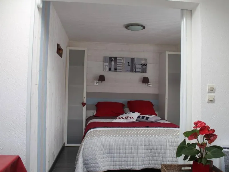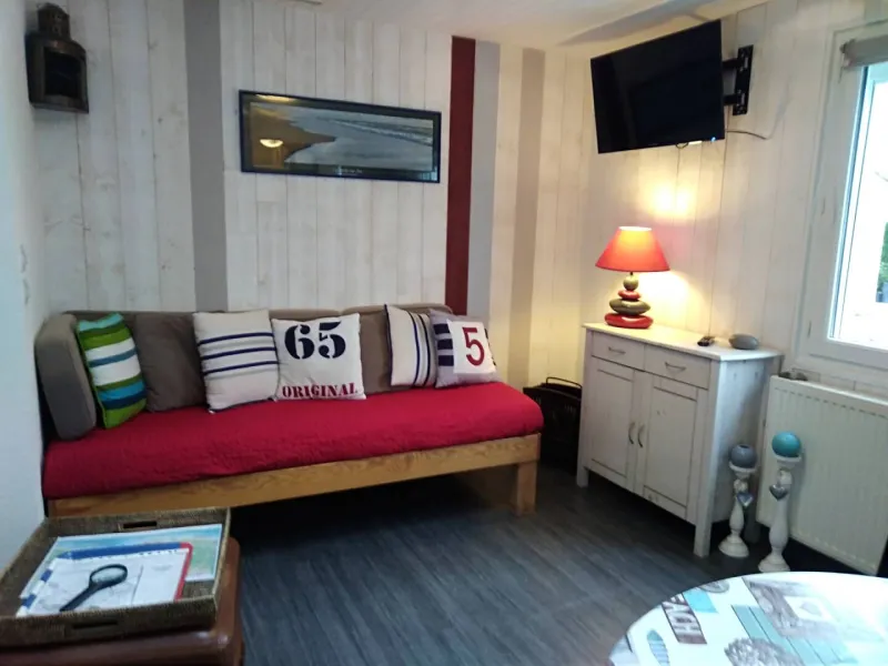 Gîte set in a house located in a residential area on a 1100 m² property comprising the owner's accommodation, 2 other gîtes and a chambres d'hôtes. Ground floor: living room/kitchen (mini-oven), small bedroom (1 double bed), shower room/wc. Garden furniture, electric grill. Shared swimming pool (5x11m) open from Easter to September. Parking in the street in front of the property.Localisation