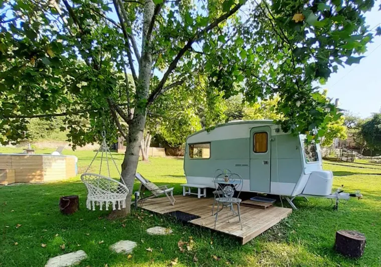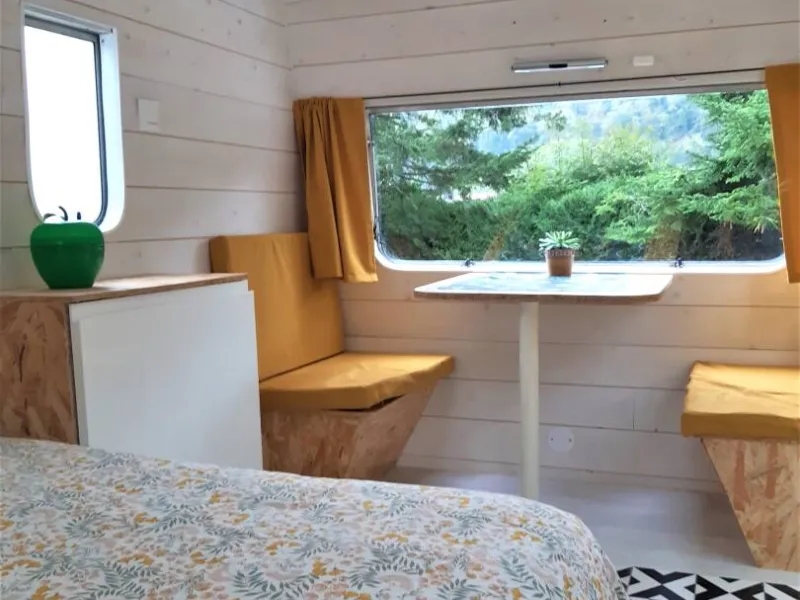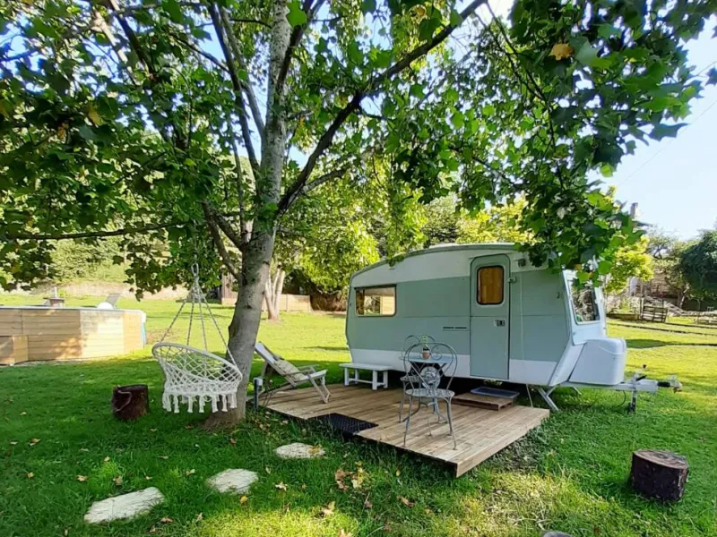 The caravan, entirely renovated, is an unusual place, decorated in a bohemian and warm spirit to please you, in a maximum respect of the environment (organic and eco-responsible materials).It is located in our grounds, along the EuroVelo6, linking it to Besançon (6 km).