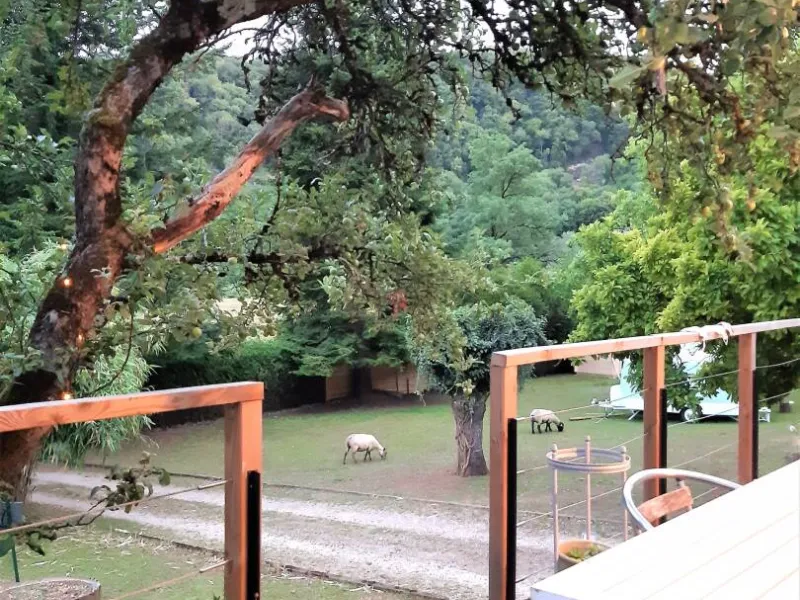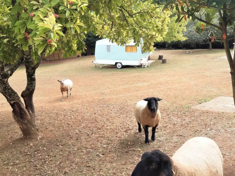 Our animals live freely on this plot (sheep, dogs, cats and ponies nearby), and will share their pasture with you...