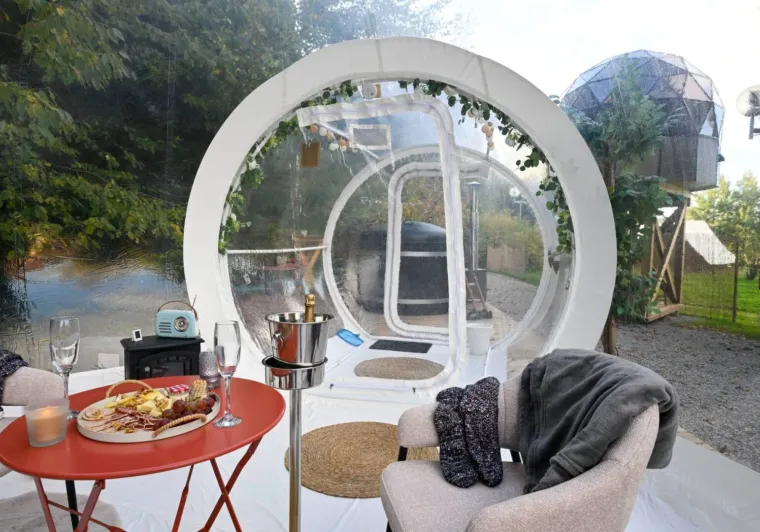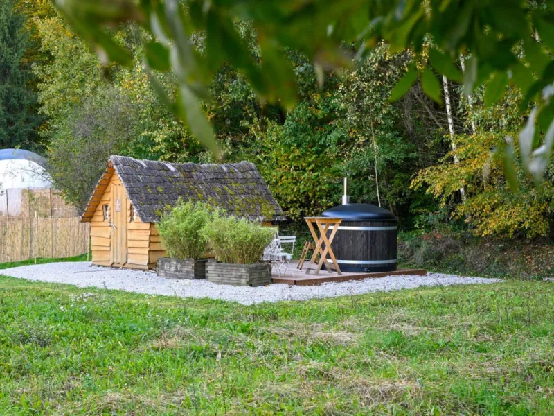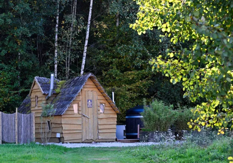 Escape for two to the enchantment of the Cabane d'Agrid: a unique cocoon in the heart of the forest, where peace and quiet, a private Nordic bath and cosy comfort promise an unforgettable night at La Clé des Champs.A sanitary chalet with shower and WC is just a few steps away. Breakfast, included in the price, will get your day off to a good start.