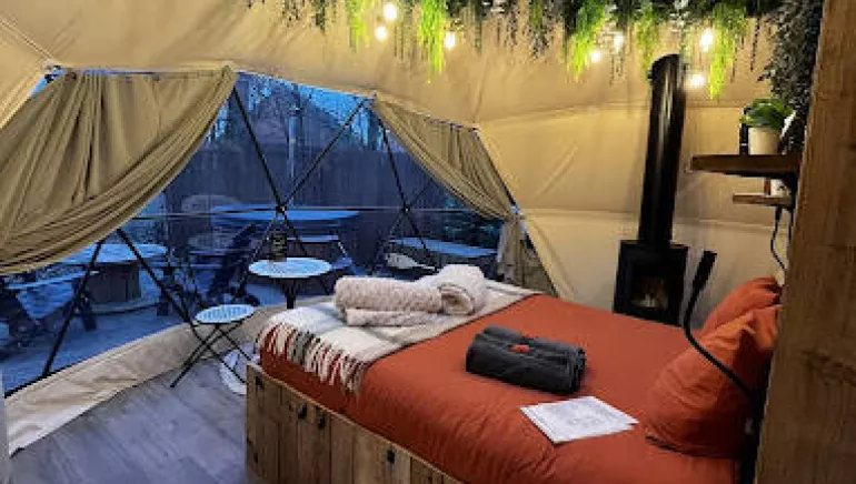 An unusual accommodation that will appeal to nature lovers in search of something original. An ideal place for lovers to recharge their batteries in contact with the surrounding vegetation. Inside, you'll find all the comforts you need for an unforgettable evening: kitchen area, dining area, bathroom, wood-burning stove, double bed and poetic decor. A unique experience under the stars, thanks to the skyview inside, which will lull dreamy travelers to sleep?