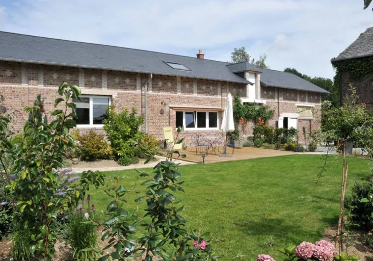 Three bedrooms in a former cowshed. Two bedrooms upstairs from the living room and a large duplex bedroom with independent access. Bedroom "LE ROMARY": 180x200cm double bed. Bathroom with 90x90cm shower and WC. LA GARENNE" bedroom: 180x200cm double bed. Bathroom with 90x90cm shower and WC. Bedroom "LES GRANDES HERBES": duplex with private lounge and small flat-screen TV, and shower room with Italian shower and WC on the first floor, and a 180x200cm double bed on the mezzanine floor upstairs. Private terrace with garden furniture. All 180x200cm beds can be converted into 90x200cm beds. The living area features a kitchenette, a lounge with fireplace and flat-screen TV. Private parking. Terrace with garden furniture. For pets: please contact us.Localisation