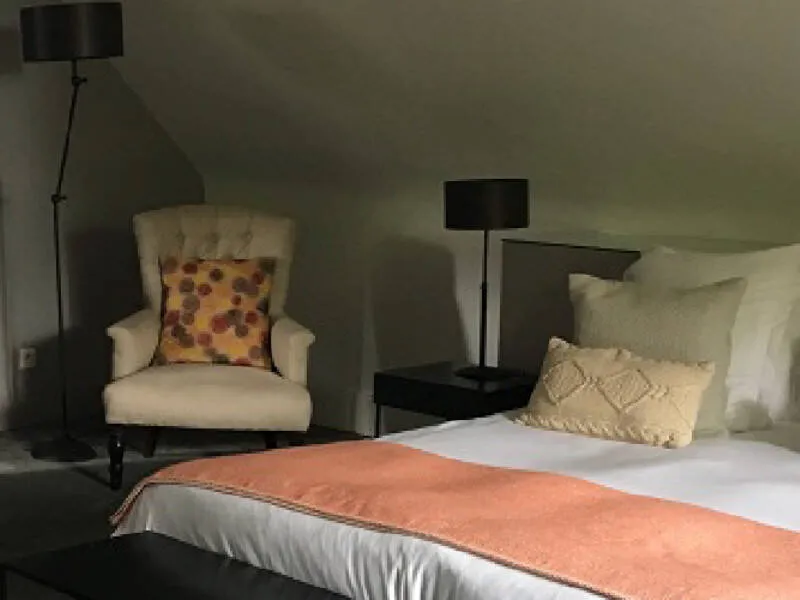 Near the historic center, large charming house open onto a magnificent garden. The rooms have been carefully restored with great attention to comfort and decoration. The Grand Chamber of the second floor has a view over part of the abbey Outside deck and garden. It has a double bed 160x200, bathroom with shower and toilet. Beautiful relaxation area (lounge). Possibility of two additional beds (90x200) in an adjoining room.Localisation
