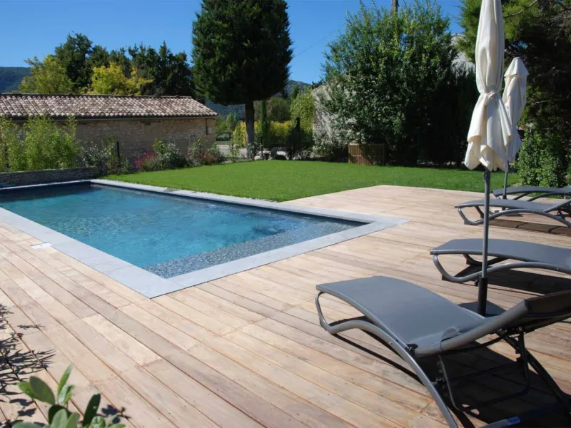 Et pour se détendre et profiter du soleil, la piscine 11m x 3,5 m, nichée dans un écrin de verdure, stérilisée au sel et chauffée en mi-saison, offre d’inoubliables moments de farniente.