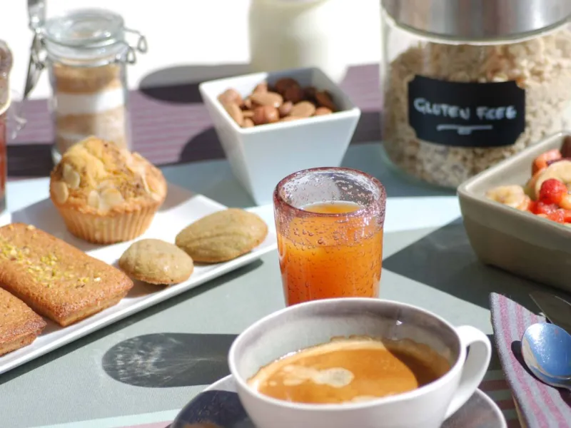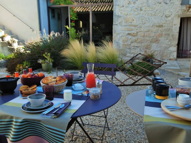 Nos petits déjeuners, gourmands, « faits maison », « sans gluten » et bio pour l’essentiel font la part belle aux produits locaux et de saison. Instants d’échanges et de convivialité privilégiés, ils sont servis au calme dans la cour intérieure de notre mas.