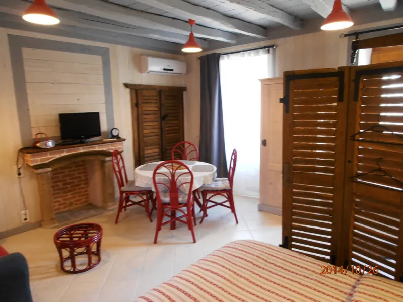Independent guest room renovated with charm in a building dating from 1800.A large air-conditioned room with a double bed (160x200) that can be separated, a sofa bed (140x190) and a dining area (sleeps 4). Fully-equipped kitchen - Shower room - WC - Wood-burning stove.