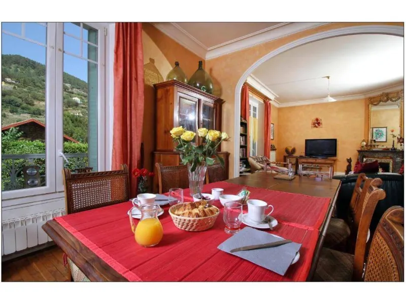 If weather allows, breakfast served on terrace shaded or in living room. Several places to eat, all shops/services in village (about 200m). Garage possible. Octagonal swimming pool (diam. 6m, 1.5m deep). Close to river for wild swimming.