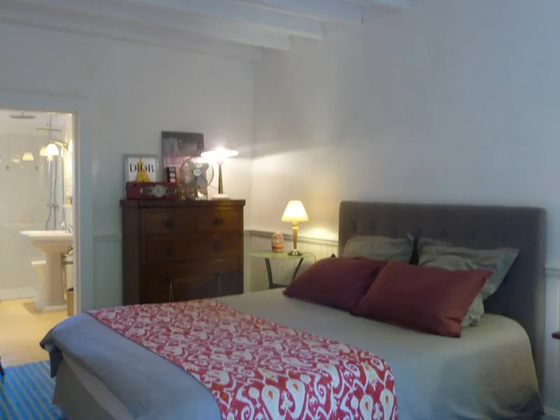 The house is a longère, a typical Gâtinais building, an old renovated farmhouse with outbuildings. The setting is calm and restful. The two guest rooms, with independent access from the garden, are tastefully decorated with en-suite shower rooms: Bedroom n°1 with 1 x 160x200 bed (18m2), Bedroom n°2 with 1 x 160x200 bed and 1 x 80x220 single bed on request (20m2). A cot can be provided on request. Breakfast is served with homemade jams and fruit from the orchard. Rooms are equipped with courtesy tray and TV, and internet access is free. Table d'Hôtes on request (26 euros per adult and 14 euros per child under 12). Parking is available on the property.Localisation