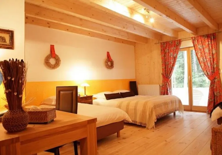 The "Authentique" is a new wooden bungalow that stands among towering pine and spruce: the perfect spot for nature lovers and guests who appreciate peace and quiet. Waymarked trails and cross-country skiing tracks begin right by the house. Rated 3 Epis by Gîtes de France, and a member of the GTJ (Grande Traversée du Jura) and Bertrand Vacances. Our guest house has 5 rooms each with their own bathroom and WC, a plasma TV, desk, and furnished terrace area.Localisation