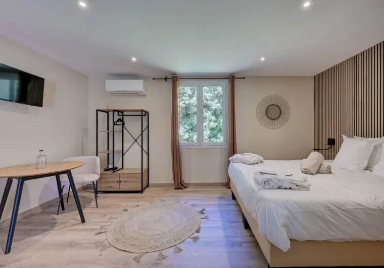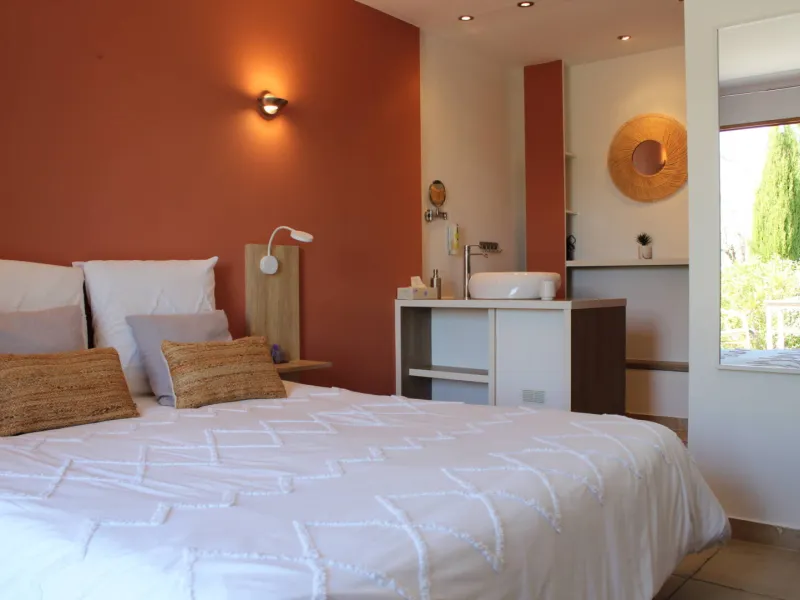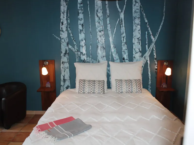 In a warm and relaxed atmosphere, Isabelle and Guillaume welcome you to their home on the hills above Mollans-sur-Ouvèze, from April to the end of October.Le Lit Qui Danse offers 3 double rooms and 2 family suites, each with its own terrace. In this relaxing setting, you can swim in the large heated swimming pool, relax on one of the sunbeds in the solarium, play pétanque under the plane-tree mulberry trees, take a nap in one of the wrought-iron beds, have a drink in the lounge bar area, share an evening around a good table, enjoy a relaxing massage or a session of sophrology.