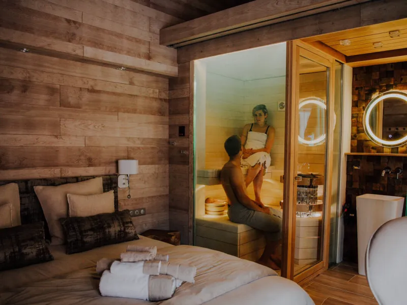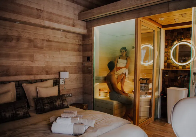 Lodge sauna - côté rivière & spa