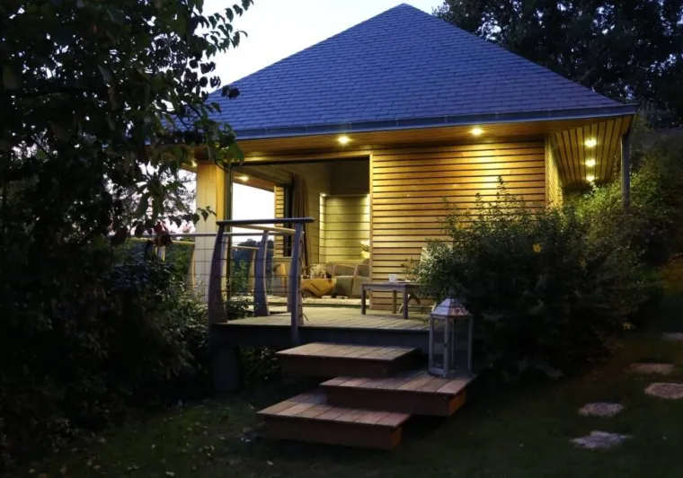 Our Sauna Lodge is a cocoon nestling in the trees, facing the river, totally dedicated to well-being!This wooden building on stilts is a haven for couples looking to recharge their batteries. A traditional sauna is in your room! It offers a magnificent view over the charming port of Grez Neuville.