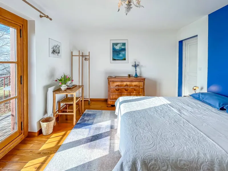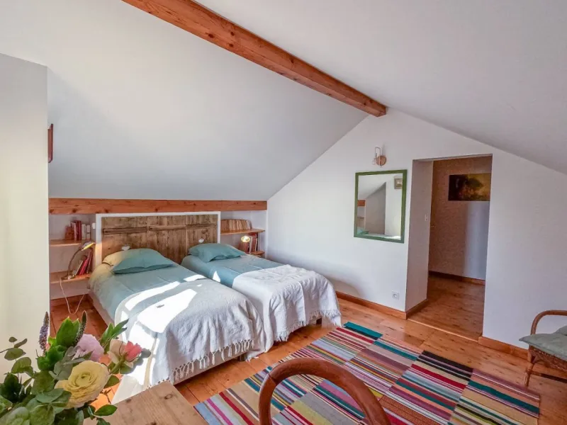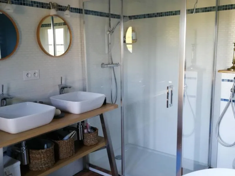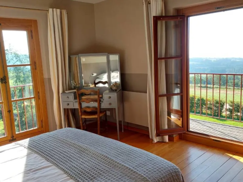 Ideal for a business trip or a family holiday, this place offers an exceptional setting. Situated in the heart of an inspiring natural setting, the property boasts a traditional orchard of over one hectare in which you'll enjoy strolling. The large courtyard with its old-fashioned cobblestones and fountain is an ideal setting for personalized events (cocktails, country meals, games, exhibitions, etc.).The kitchen is shared with the two other guest rooms. The residence also offers a table d'hôte service, by reservation only. The family-style cuisine is prepared with local and natural products, and is best enjoyed without moderation!