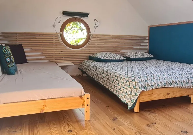 The Clair de Lune Suite is located as close as possible to the stars, on the 1st floor of an old Bresse barn that we have renovated ourselves.Enjoy 70m² of duplex living space, built from wood, brick and straw...