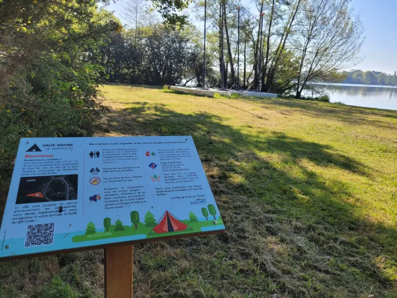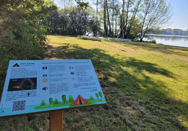 Opposite the Plaines de Mazerolles on the site of the yacht club, a 6-place nature halt for cyclists and walkers. The rest area is free of charge, but you must register on arrival using a QR Code.Label Accueil Vélo