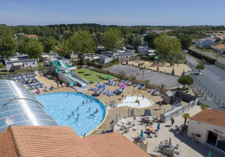 Located in the heart of Brétignolles-sur-Mer, a charming seaside resort on the Vendée coast, La Trévillière campsite invites you to make the most of your holiday. Just a stone's throw from the covered market and the cycle paths of the Côte de Lumière, you can alternate bike rides, water sports activities and moments of relaxation on the beach.On-site facilities include a heated indoor swimming pool, waterslide, farm-themed paddling pool, playground and mini-golf, not forgetting the gourmet delights of the restaurant/snack bar, local produce shop and friendly terrace.