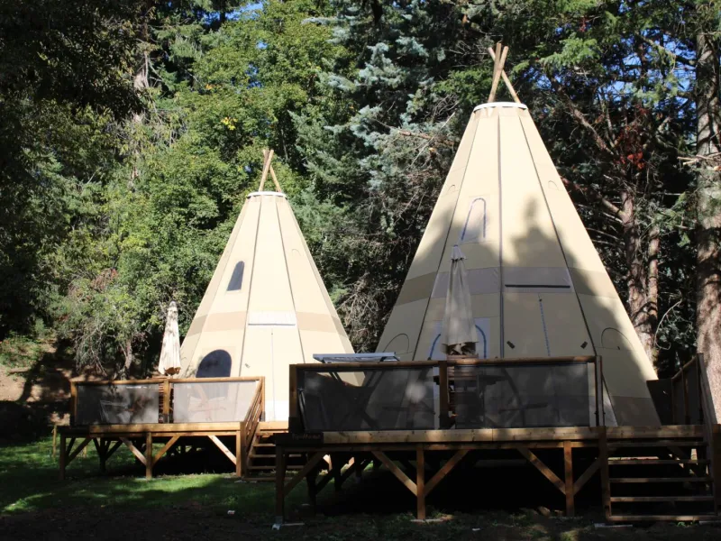 We have large, shaded spots, mobile-homes, pod cabins, tipi-homes and regular lodges. In the lobby you can find a small grocery shop, a fresh bred and pastries selling space as well as books and board games that you can borrow for free.
