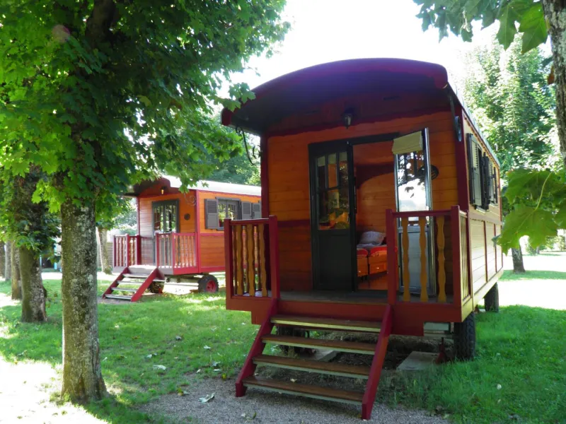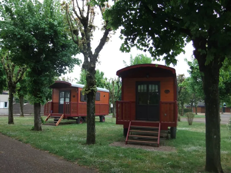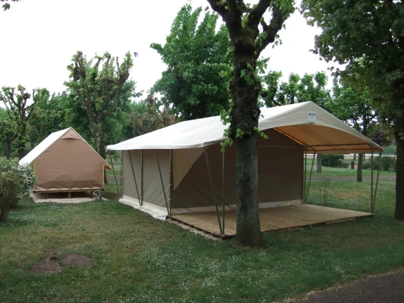 The campsite also has two caravans (one for 2 people and one for 5 people), a canvas bungalow for 5 people and 3 "Trek" tents for 2 people and 2 "Baroudeurs" tents for 2 people.