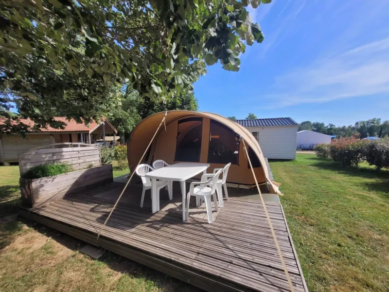 Equipped with 11 chalets, 1 PMR chalet, 12 comfortable mobile homes, 1 unusual cabin, 4 tents for 4 people, 1 bivouac and 18 camping pitches with electric hook-up and motorhome emptying.Snack on site, heated swimming pool from June to September, bowling alley, football field, ping-pong, games for children, mini-golf, theme evening on Tuesdays.Pets allowed (mandatory cleaning fee), horses are welcome.