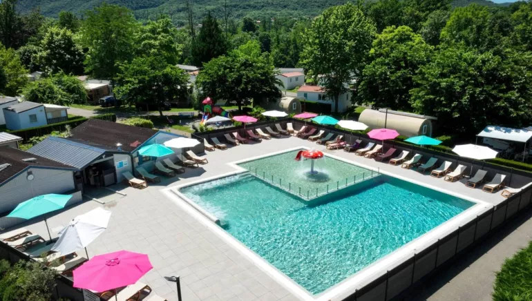 Espace aquatique entièrement rénové – boulodrome – aire de jeux pour les enfants.- En saison, de nombreuses animations vous sont proposées : concert, concours de pétanque, etc.- Restauration sur place.- Arrêt de la navette pour le centre ville à 200m du camping. Les cottages et bungalows à votre disposition :- cottages 4 à 6 places- tentes 4 places- coco sweet 4 places- Valentins 2 places. Accès : Le camping se trouve à l’entrée nord de Foix en bordure de la RN20, à 1,5 km de la gare SNCF de Foix et à 100 km de l’aéroport de Toulouse Blagnac.