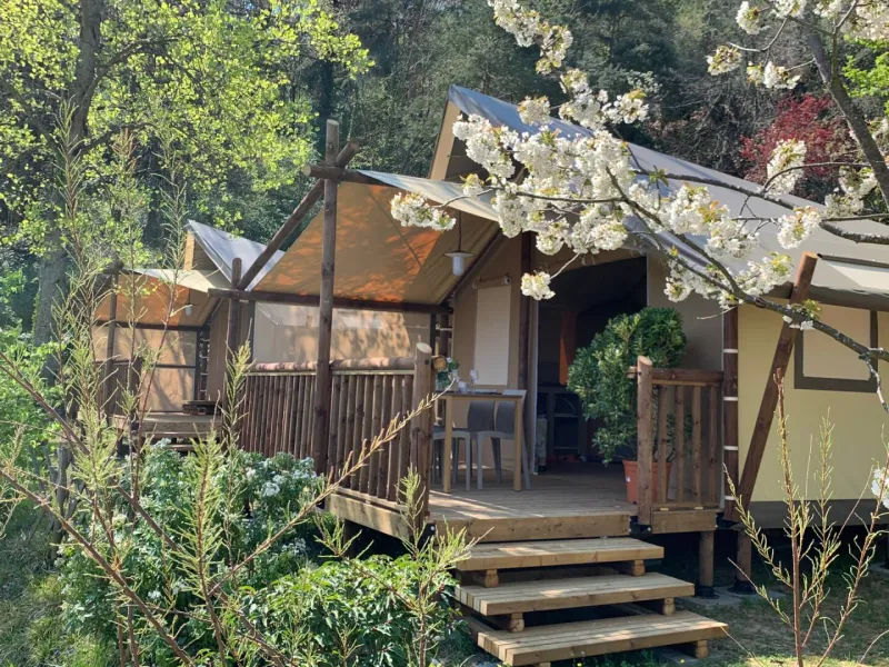 Open from 01 April to 30 September, the « Iserand – Calme et Nature » campsite is located between Ardèche and Drôme, in the heart of the green Ardèche.It has 60 pitches includind 8 comfortable chalets, 4 small chalets, 2 large Lodges tents, and some atypical wooden accommodation for the comfort of cyclists because we are 100 meters from Via Rhona.