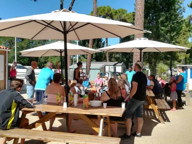 Peace and quiet in 3 hectares of maritime pines and holm oaks, close to the town centre, the beach and the forest. Bare pitches, mobile homes and chalets for hire. At 200m, entertainment, markets, free bus (July and August). Le clos des Ecureuils: welcomes groups of up to 48 people in mobile homes.Open from 1 April to 30 September, the campsite is ideally situated on the edge of a pine forest and close to the beach and shops.