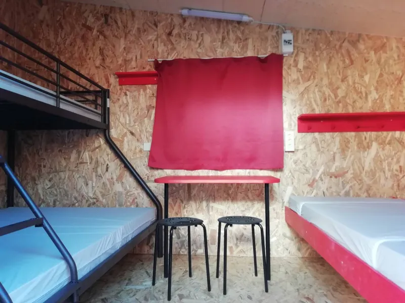 Comfortable beds with a shelf, bike storage inside if maximum 3 people in the hut, insulated from the cold, heat and rain! Electricity included: lamp and sockets. Comfort and standing comfort. Peace and privacy in the cabin, luggage safe and within easy reach, drying facilities, VAE recharging in the cabin, autonomy with secure access. No pets allowed. Sanitary block shared by all campers, in the immediate vicinity.
