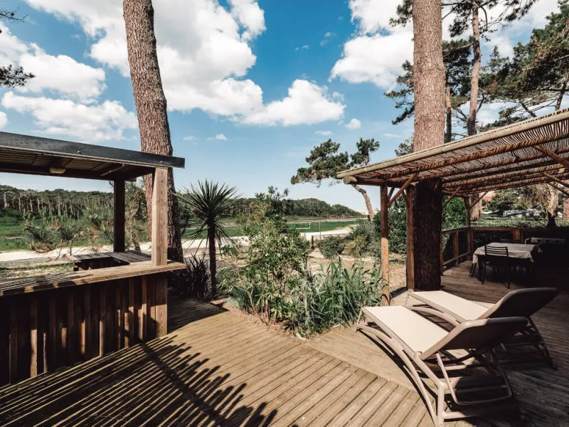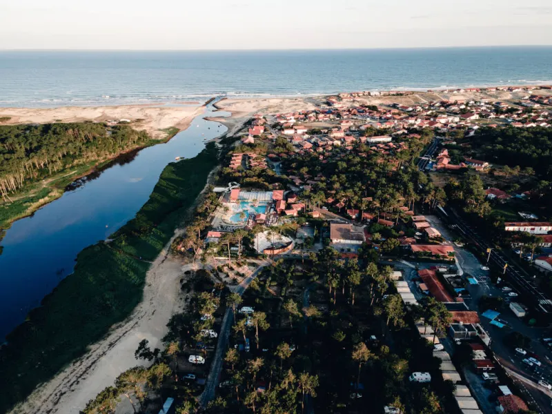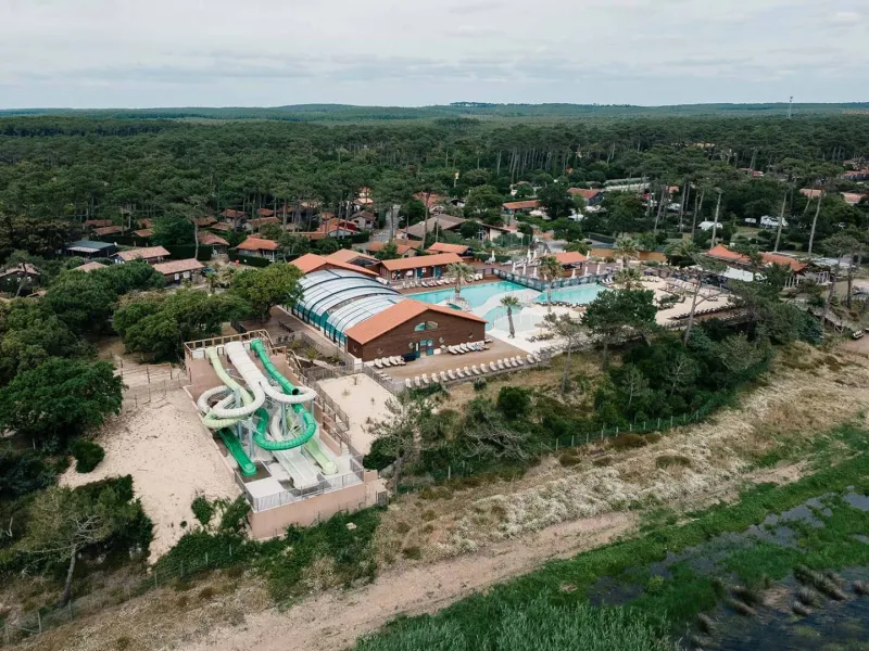 Only 500m from the ocean in the heart of the wild Landes, our 5-star village has preserved its natural and authentic setting, a change of scenery is guaranteed. A choice of chalets, cottages and pitches for pure camping lovers. Our 850 m² heated water area is composed of a lagoon, a river, 4 slides, 1 paddling pool and a part covered by a translucent and partially removable dome. A wellness area awaits you. The restaurant and bar welcome you all season long to enjoy the panoramic terrace overlooking the Contis current and the ocean. Activities and entertainment for young and old from April to the end of September. So many possibilities to make your holiday dreams come true and relax to your heart's content.Localisation