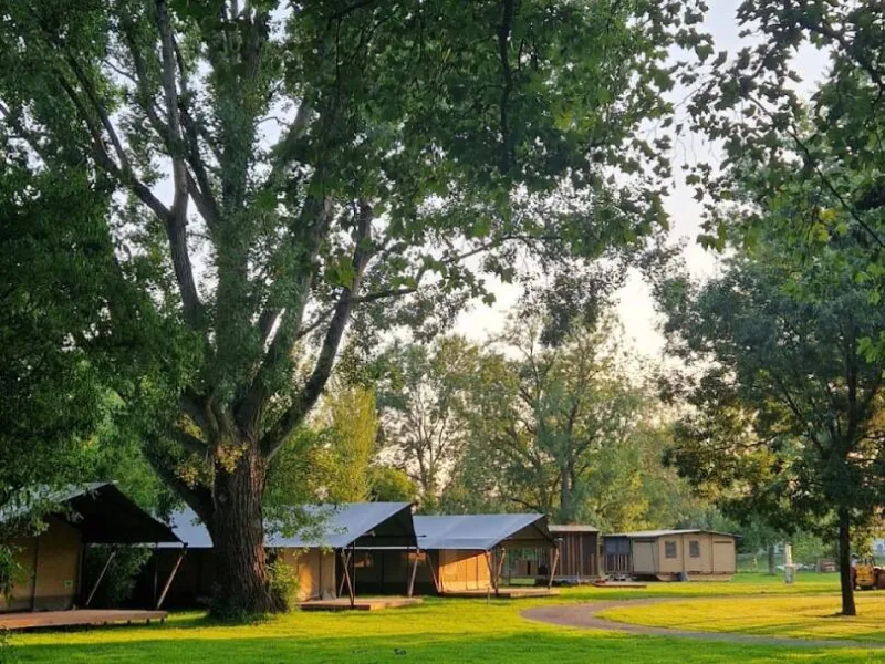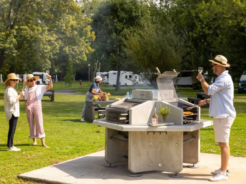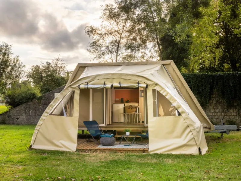 Calm and shady campsite by the river. The campsite is ideally situated, 900 m from the town center and its numerous monuments.Localisation
